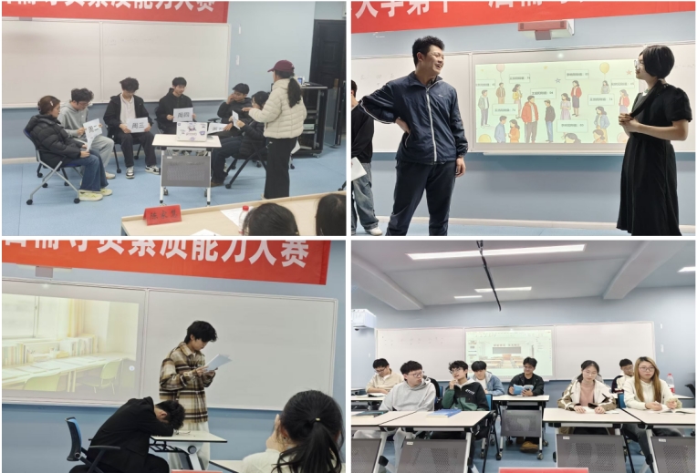 4月14日晚,数学科学学院在三山楼704教室举办2026年“心沐暖阳 逐梦远航”心理情景剧比赛。学院关工委老教师王文初,辅导员武启慧、朱江涛、李健应邀担任评委。经过前期初赛筛选,共有六支队伍晋级决赛。伴随主持人开场致辞,比赛正式拉开帷幕。